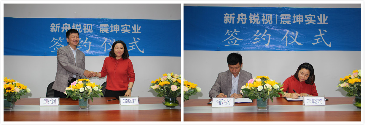 2018年3月27日,浙江震坤實業有限公司與成都新舟銳視科技有限公司在成都天府軟件園簽訂戰略合作框架協議。經雙方友好協商,一致同意在智能門禁、無人酒店、刷臉門鎖等產品開展聯合產品研發和市場開拓工作。